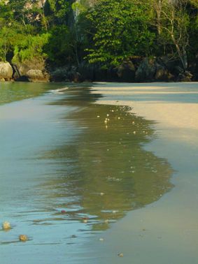 Plate 2b West Railay beach: sparse lines of coral and shell fragments in the lower tide zone, at the north end of the beach.