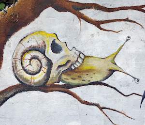 figure 4: Detail from ‘Graffiti Wall’: a snail. (Photo: Alex Menez)