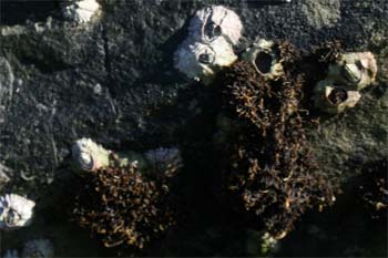 While the most interesting habitat is underneath the bounders the tops of boulders should not be overlooked. Tectura may be well disguised against Lithophyllum. Also keep an eye out for holes that may indicate either boring species (such as Barnea or Hiatella) or nestling species such as Venerupis senegalensis.